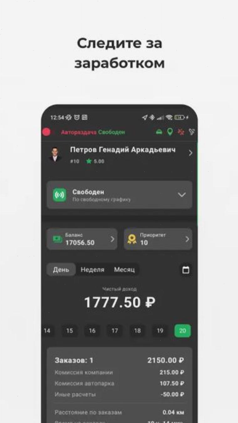 - Учёт заказов и доходов. Каждый водитель видит в личном кабинете количество выполненных заказов и заработанные средства.