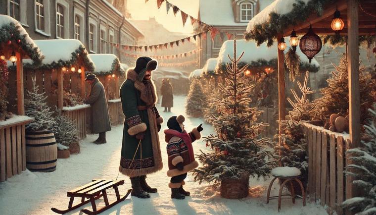 Украшали их яблоками, конфетами, орехами и свечами, затем стали появляться и игрушки с рождественской тематикой. Ёлочные базары — тоже дореволюционное явление, но если в наше время в декабре они есть в каждом районе города, то тогда главное праздничное дерево можно было купить лишь у Большого театра или на Воскресенской площади (сейчас это площадь Революции).
