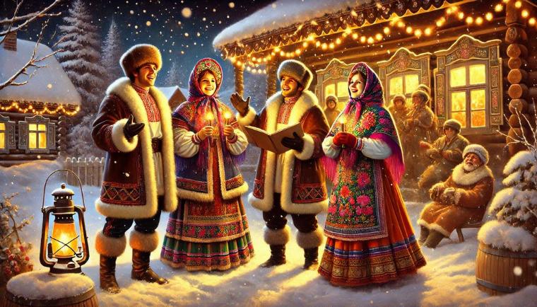 Сначала никакого Нового года и не было — праздновали только Рождество. Накануне завершался пост, и всем не терпелось всласть повеселиться. Молодёжь рядилась, колядовала, ходила по домам, получая за это угощения. Впрочем, не только молодёжь: купцы, например, надевали специальные маски и в нарядных санях ездили к коллегам и даже к высшему начальству в Кремль. Им пирогов не выдавали, а сразу сажали за стол, где и обсуждали деловые вопросы. Иногда весь праздник превращался в такие поездки, и это было утомительно.