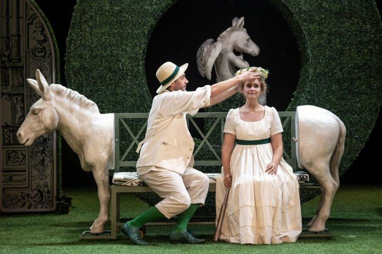 Изначально складывается впечатление, что перед нами классическая комедия положений наподобие «Женитьбы Фигаро» Пьера де Бомарше или «Собаки на сене» Лопе де Веги. Есть пара господ, Альфред и Камилла, и пара слуг: Розетта (Агата Зеленкова) и влюблённый в неё молодой человек (Гарий Князев) — персонаж, введённый режиссёром, у де Мюссе его нет. По идее, после череды конфликтов и недоразумений, всё должно закончиться как минимум двумя свадьбами. Обилие комических эпизодов усиливает ожидание счастливого финала. Кроме того, Михаил Черняк в своей постановке словно бы продолжает лёгкую и светлую тональность другого спектакля Молодёжного театра, «Барышни-крестьянки» по Пушкину, где также играют Мария Вершинина и Агата Зеленкова, и где в конце воцаряется любовь. Однако у де Мюссе всё обернётся совсем иначе.