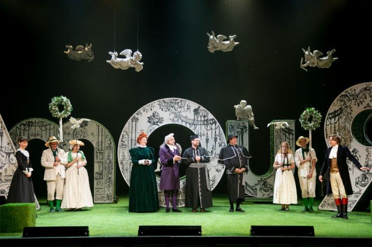 Подвижные декорации, придуманные художником Валерией Камольцевой, отражают внутреннее состояние главных героев. Гигантские буквы, складывающиеся в слово AMOUR — «любовь» — поворачиваются то одной стороной к зрителю, то другой. Эта своеобразная игра в «любит — не любит» разворачивается в зелёном саду, символизирующем молодость и жизнь.